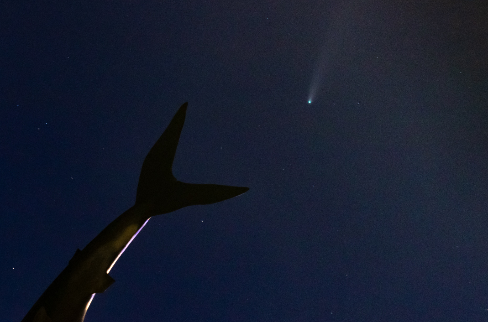 To add some local interest, I walked around the corner and photographed the comet from underneath the Headington Shark. I like the way the tail resembles the open mouth of some comet-eating space monster.