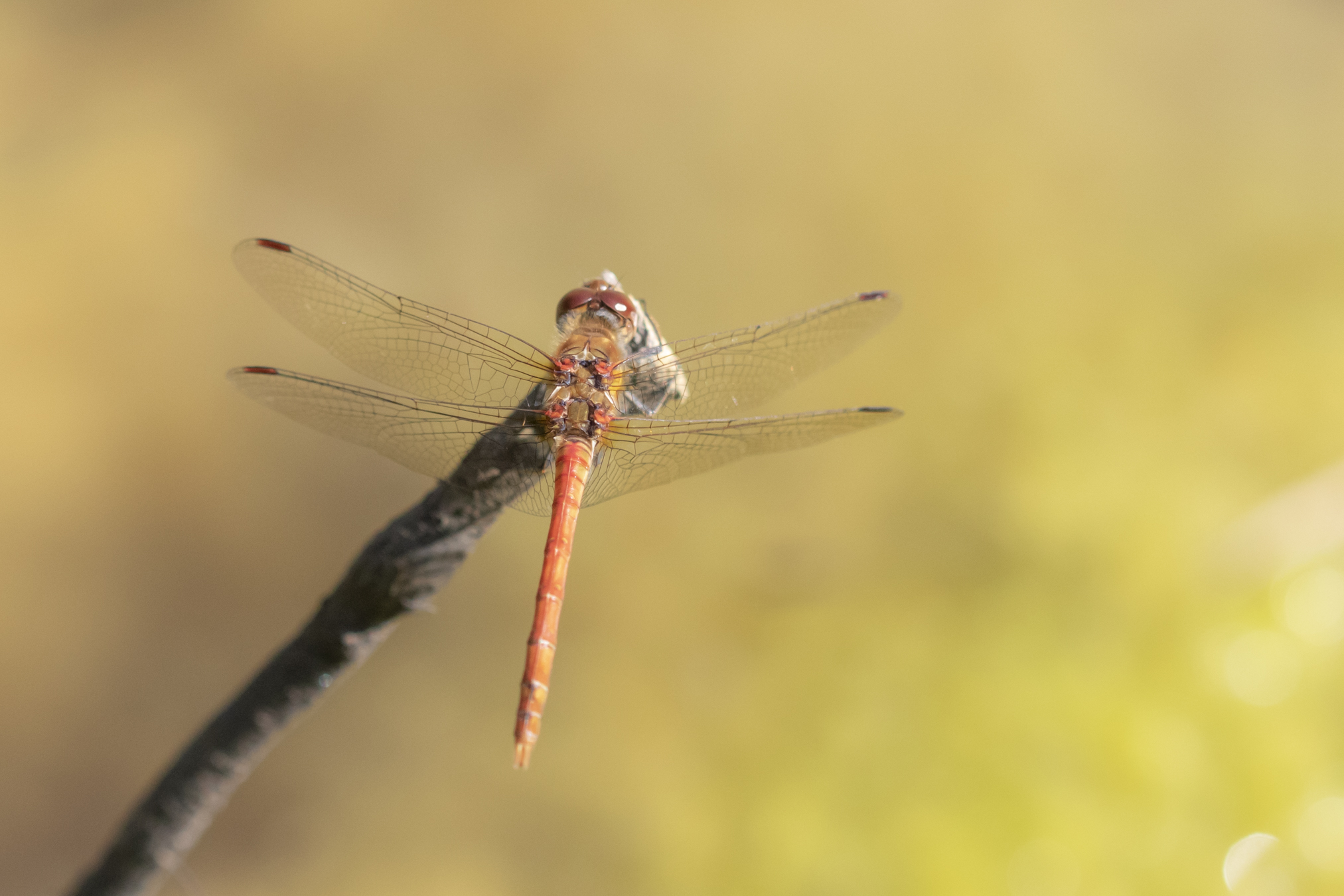 This Sunday afternoon I was sat by a pond at a friend’s farm where we were staying for the weekend. There were a few dragonflies about, including this nice male Common Darter.