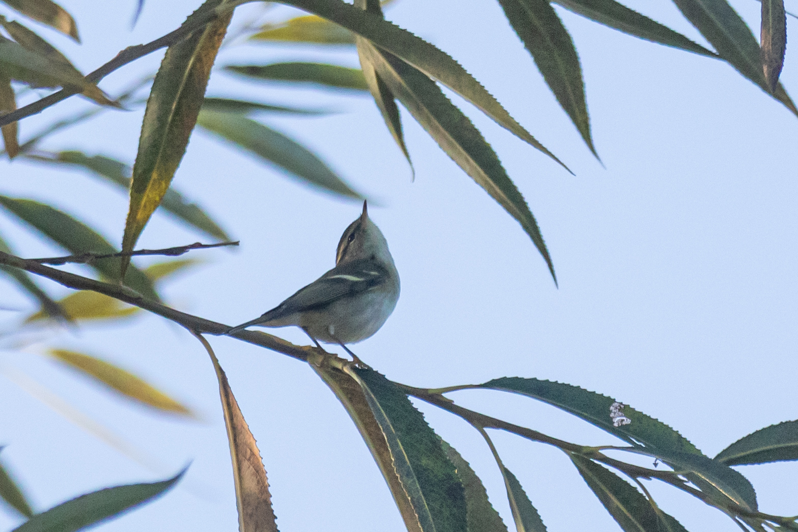 There is a movement in a nearby willow tree. It is a warbler. “That looks small,” I think to myself and I raise my binoculars: