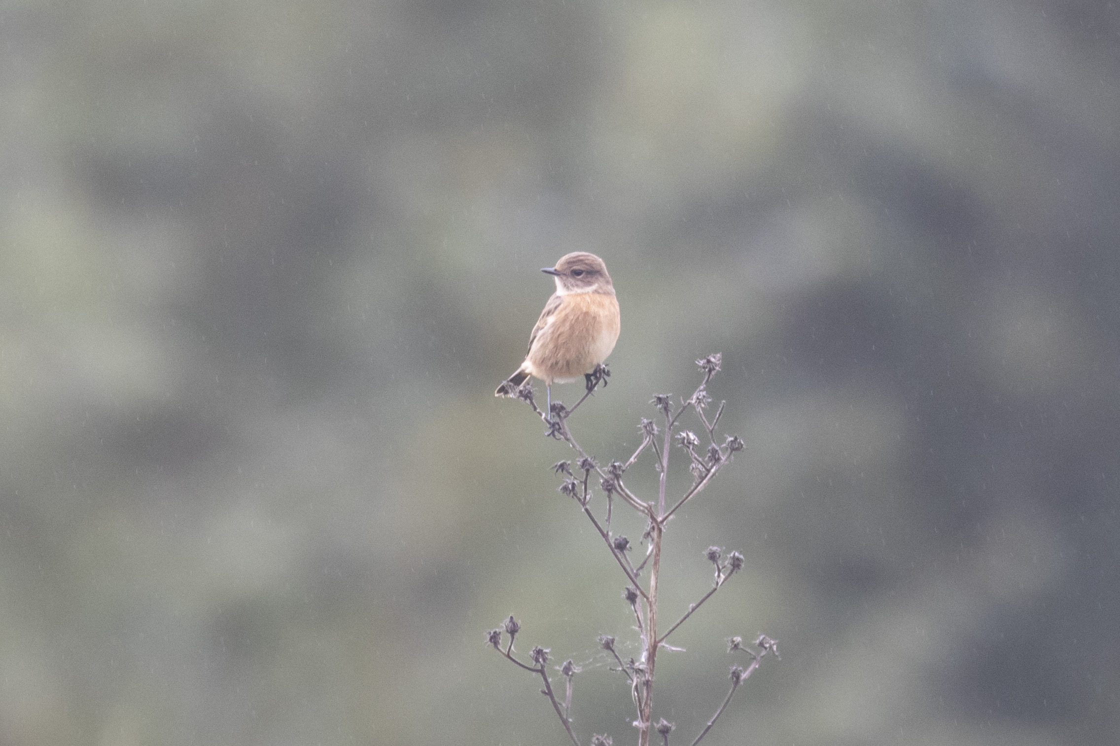 Another species of chat that I thought would turn up eventually was discovered on 25th September. After 684 patch visits, a female-type European Stonechat finally appeared in Churchill Meadow, feeding in the rain, a few hundred meters south of where the Northern Wheatear was a few weeks previously. Species #110: