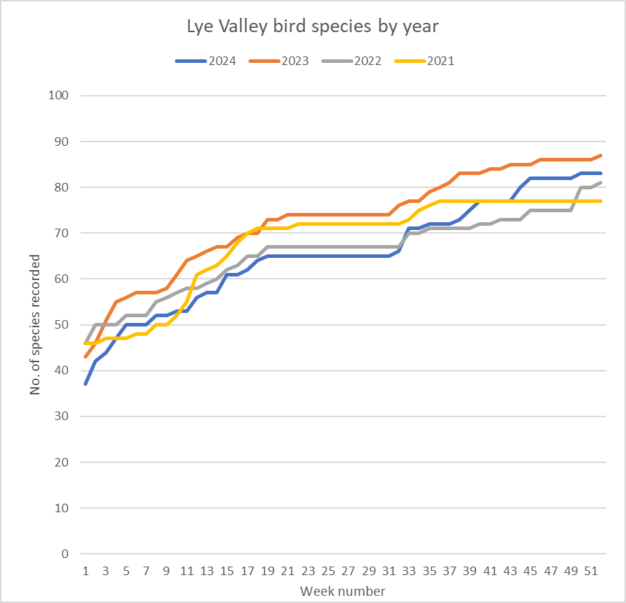 The full illustrated list of all 112 bird species recorded in the Lye Valley area can be found here. Now let’s see what 2025 has in store. Happy New Year all!