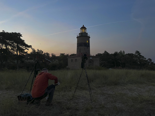 Ben “no liquid, except coffee, shall pass my lips in daylight hours” Sheldon kept me well supplied with coffee. Here he pours out the holy liquid in the pre-dawn light, next to Falsterbo lighthouse.