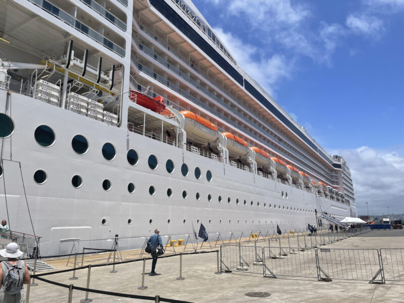 But at the forefront of my mind was seasickness. As someone who barely survived seasickness on the Scillonian III pelagic in 2001, I had given up hope of seeing the southern seabirds. How could I ever sail across the roughest oceans on the planet and survive on deck long enough to see any birds? There was only one solution, a big boat. Or in the immortal words of Chief Brody in Jaws: “We’re going to need a bigger boat!” In fact, a really big boat. Fortunately, Flock to Marion Again had booked the cruise ship MSC Musica: