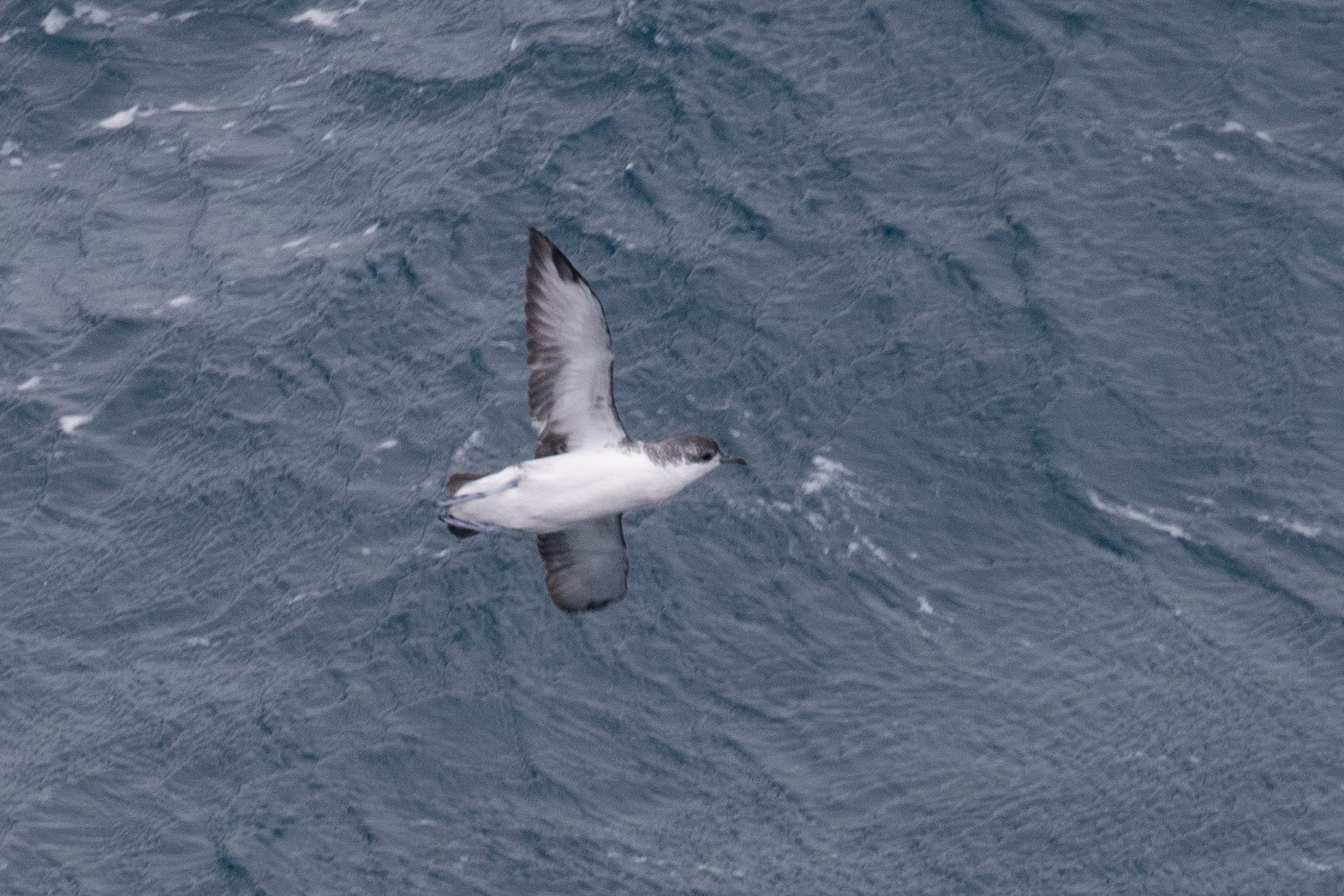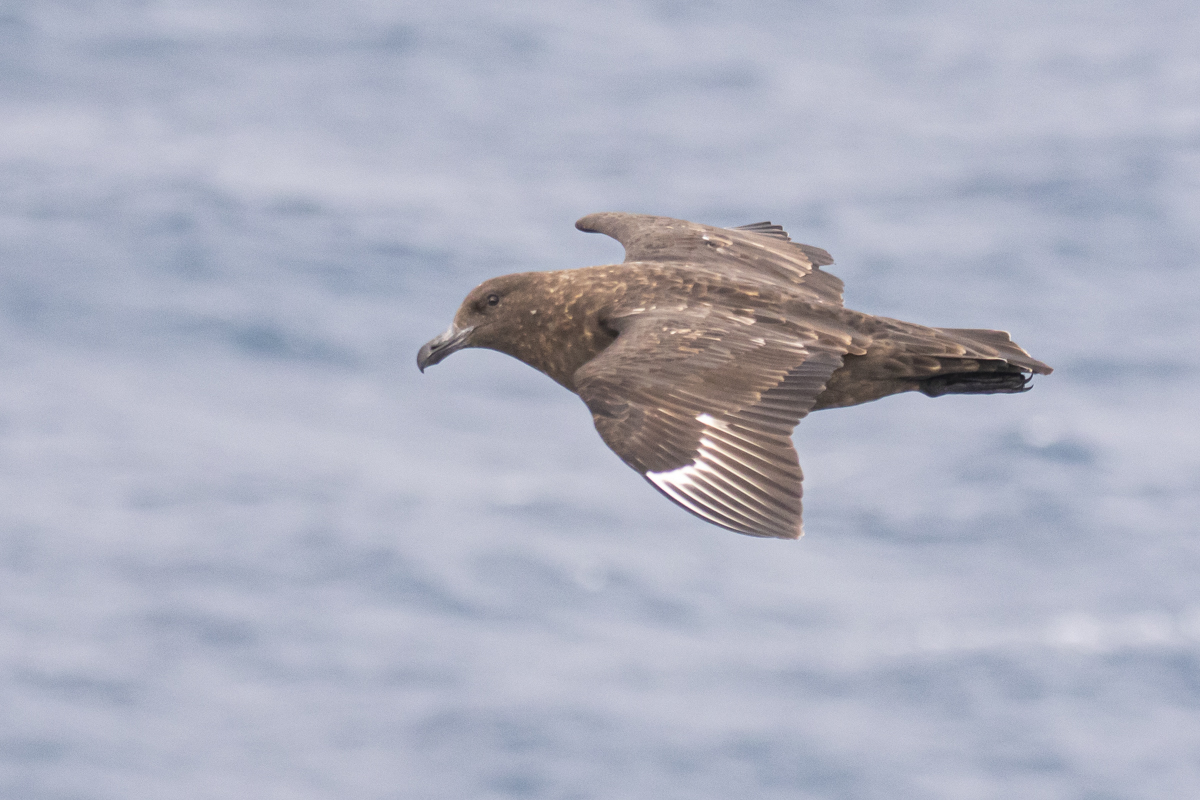 Picking out interesting petrels from the constant mass of flying prions around the islands was not easy. Andy did well to call this Blue Petrel as it passed down the side of the ship. The white tail tip is distinctive, and they have a slightly more dark-capped appearance than prions: