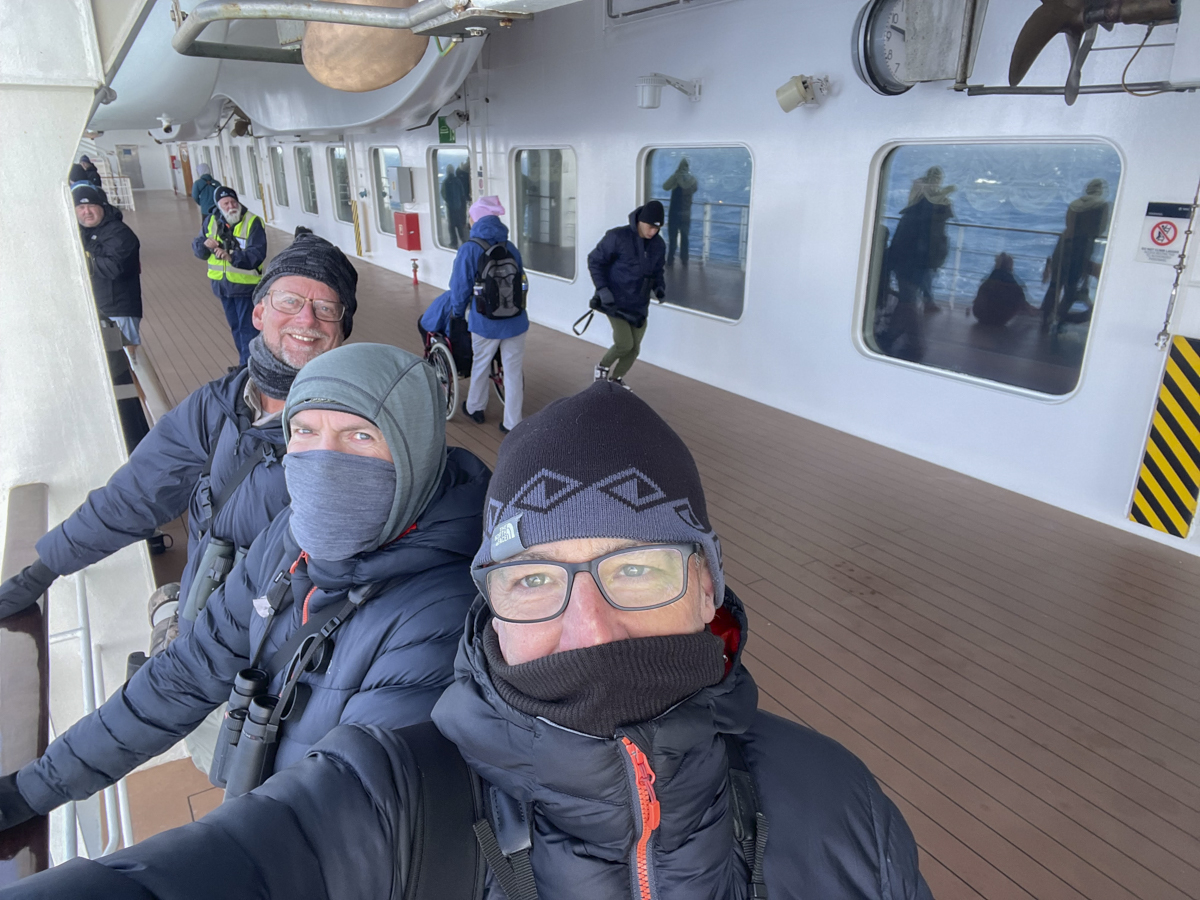 I spread the news that Flock to Marion Again was planned for January 2025, and Andy Last (from Oxford), Ian Reid (from Abu Dhabi) and I booked our places. Beforehand we admitted that we all had a number of concerns. None of us had ever been on a cruise ship before and none of us ever thought that we would. What would birding from a huge cruise ship be like? Would we be so high up that the smaller prions and storm petrels would be invisible? There was also the matter of being in a confined space with nearly 2,000 other birders for seven days. Would this be heaven or would this be hell?