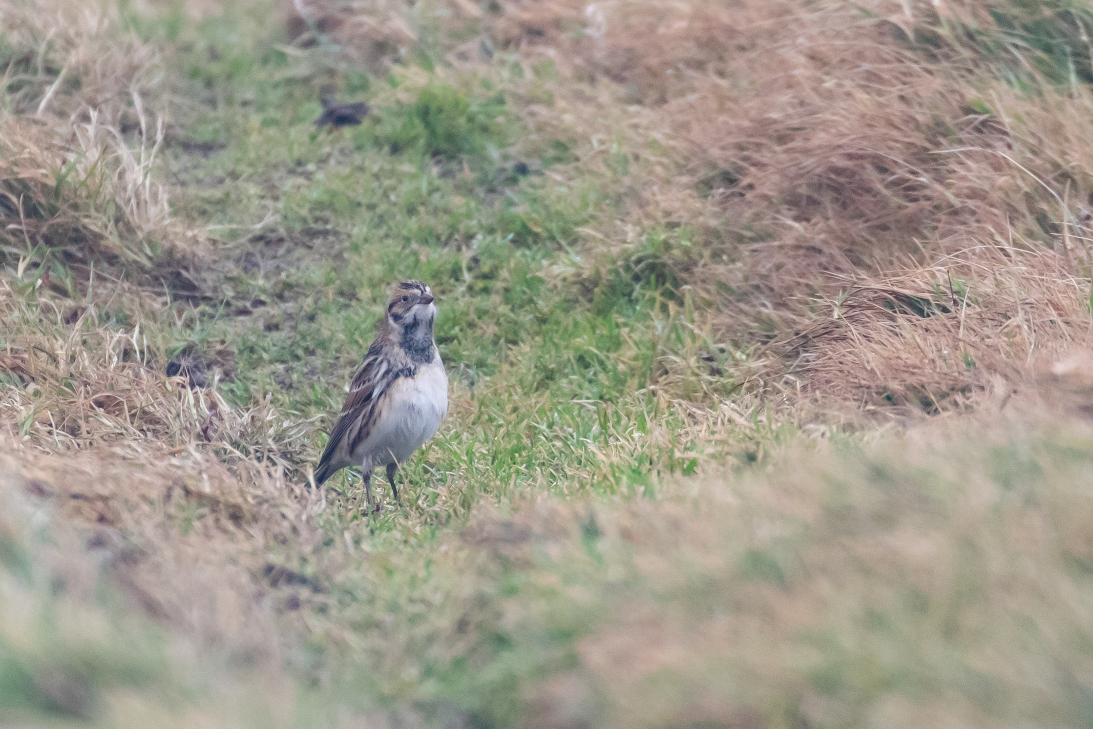 I flushed a Lapland Bunting from the track, which Andy and I managed to pin down a little while later in the same spot: