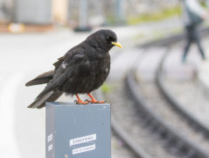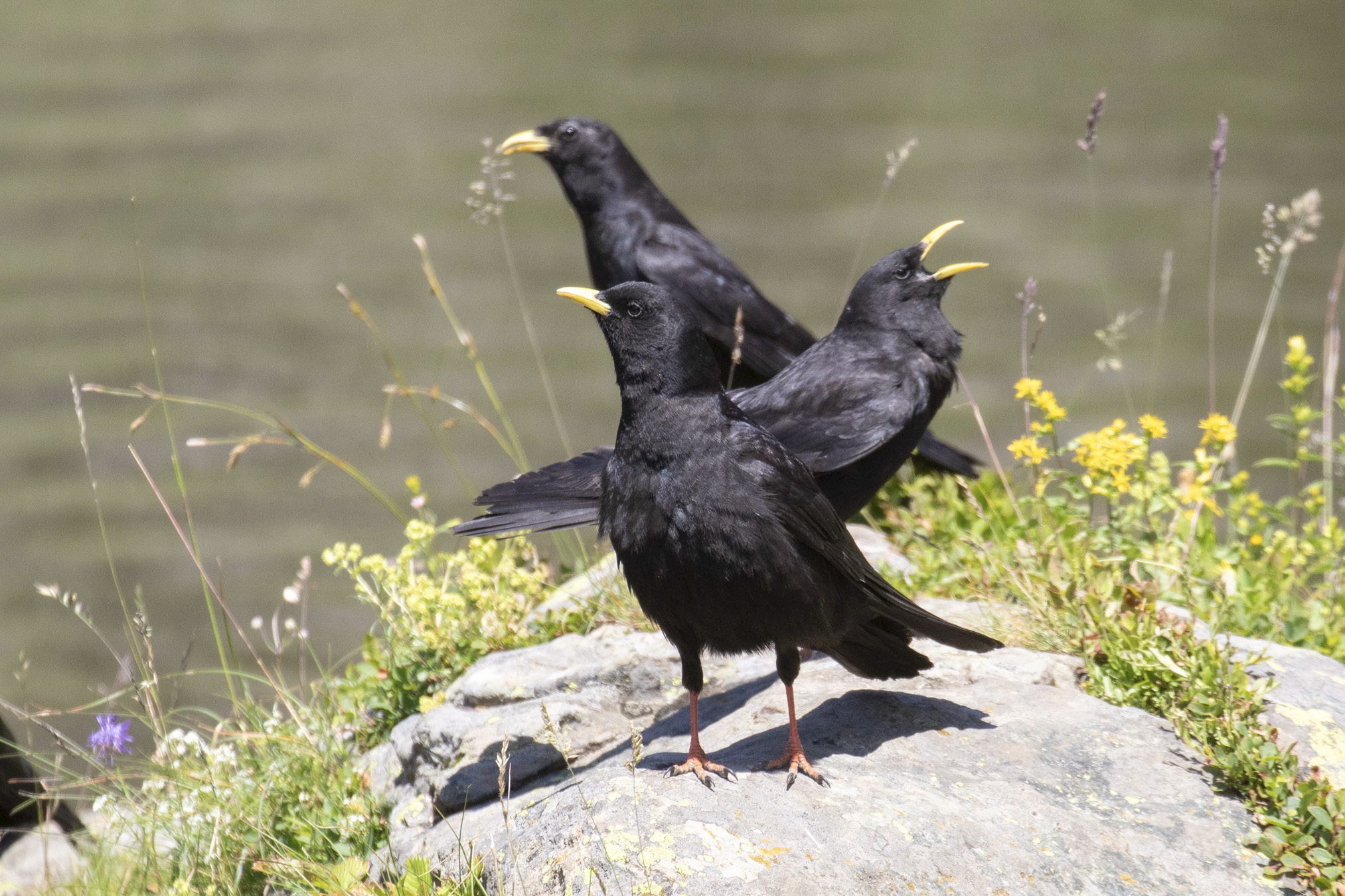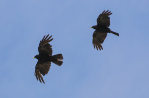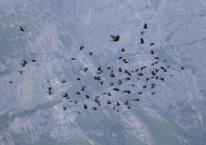 There were large flocks of Alpine Choughs, totalling over 60 birds, up here. Some calls can be heard here, with cowbells ringing in the background: