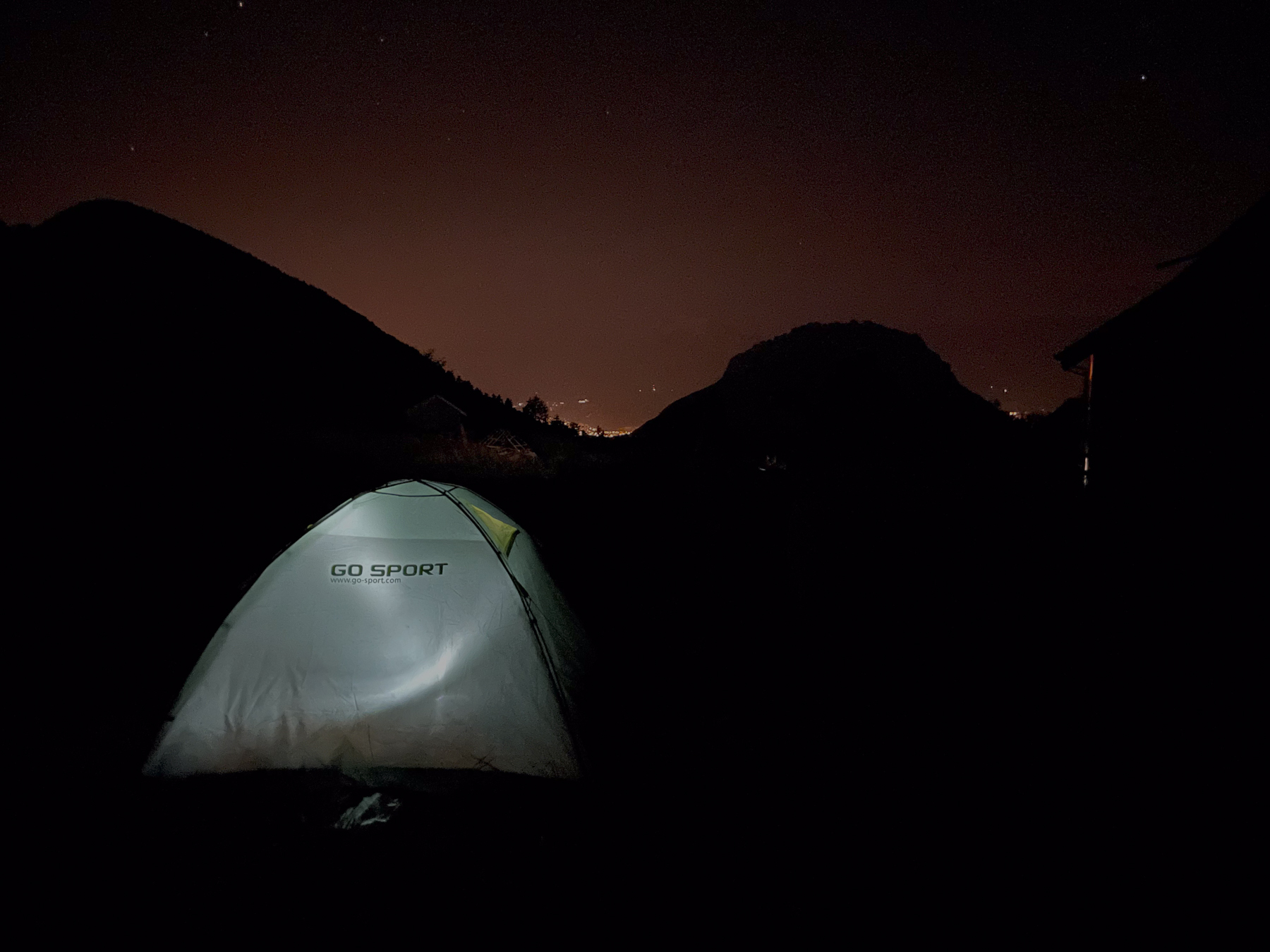 One weekend we camped out, the valley below us illuminated by the lights of Grenoble. Tawny Owls were very vocal in the local woods. It was fantastic to hear a pair duetting, using the “xylophone trill” call, as described in the Collins Bird Guide, just audible on this recording at the 3-second mark, above the huge number of insects calls: