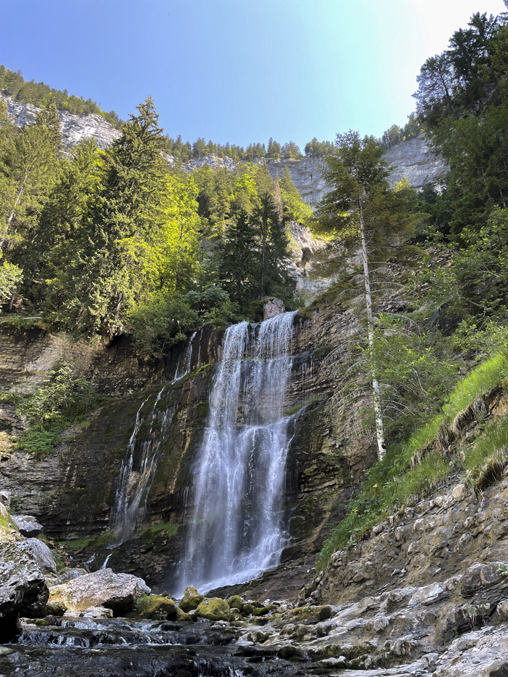 Further north is the fabulous Cirque de Saint-Même, a huge natural amphitheatre towering into the sky, with many waterfalls cascading down: